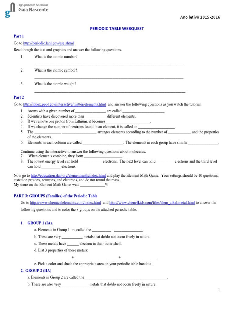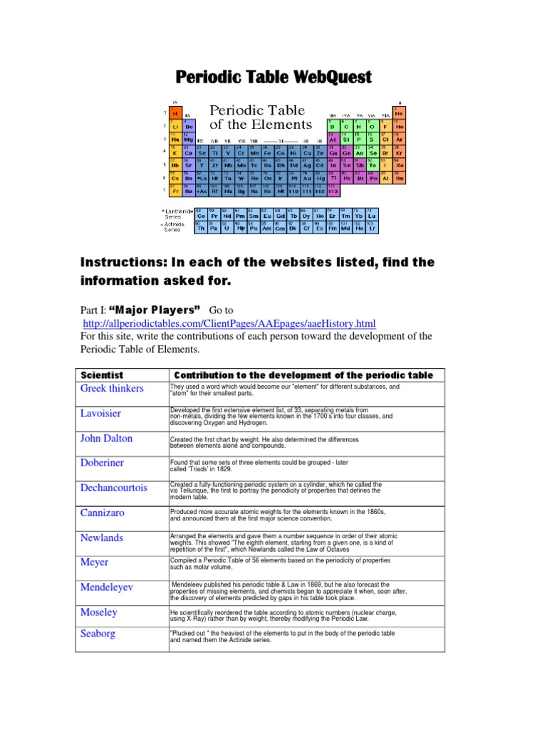 Periodic Table Webquest Periodic Table Transition Metals from imgv2-2-f.scribdassets.com Learn vocabulary, terms and more with flashcards, games and other study tools. For the past few days we've been studying trends on the periodic table. In this webquest, you will learn that trends in the periodic table are based on the group (group trends) and period (periodic trends) that an grade level: Please utilize the online version to link the webpages in order to avoid typing in the addresses. Periodic trends webquest for the past few days we 've been studying trends on the periodic table. Test your understanding of periodicity on the periodic table. Merely said, the periodic table webquest answer key is universally compatible in the same way as any devices to read. View, download and print periodic trends webquest pdf template or form online.